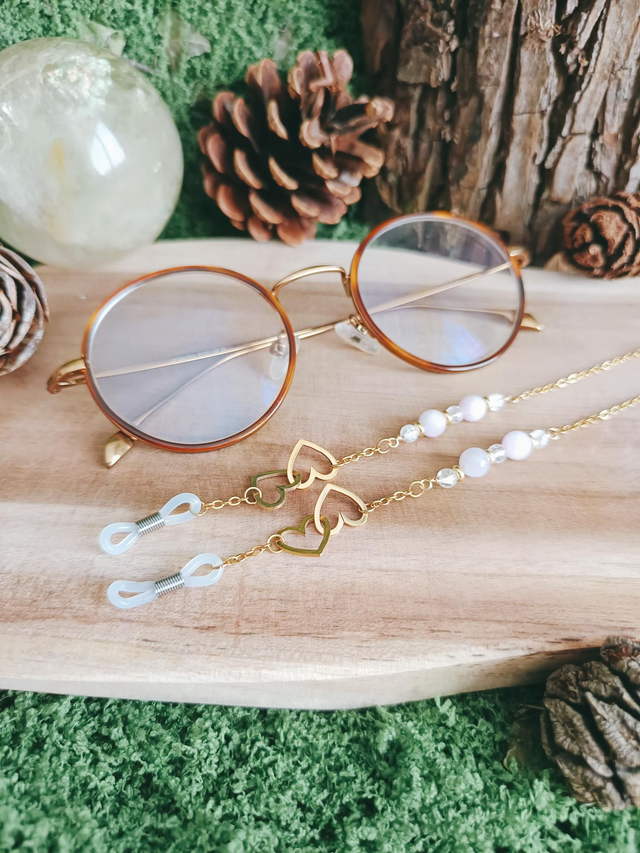 Sublimez vos lunettes avec cette chaîne en acier inoxydable ornée de kunzite et cristal de roche. Elle allie praticité et style pour une douce touche poétique dans votre quotidien.