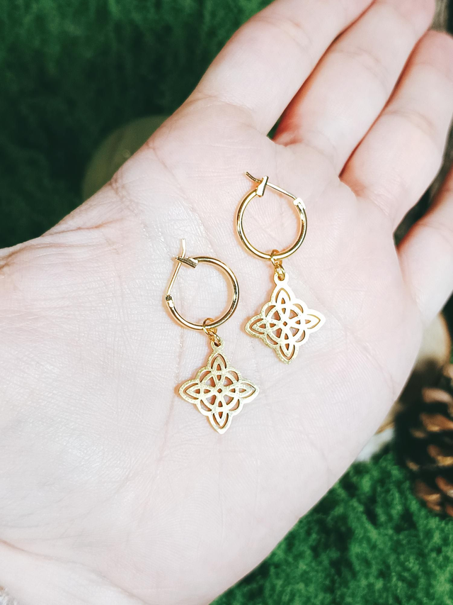 Boucles créoles avec de jolis pendentifs noeud de sorcière, pour une vibe witchy à souhait. Parfait pour assumer la sorcière qui sommeille en toi !