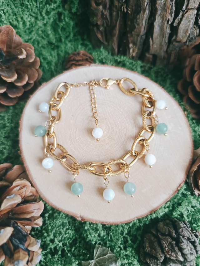 BRACELET - BOIS NACRÉ (aventurine verte et nacre )
