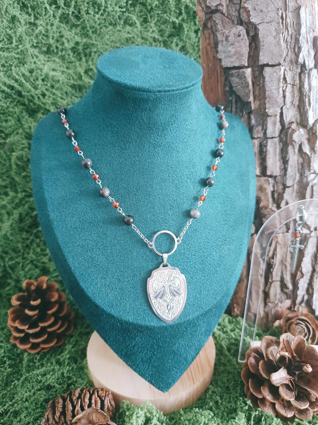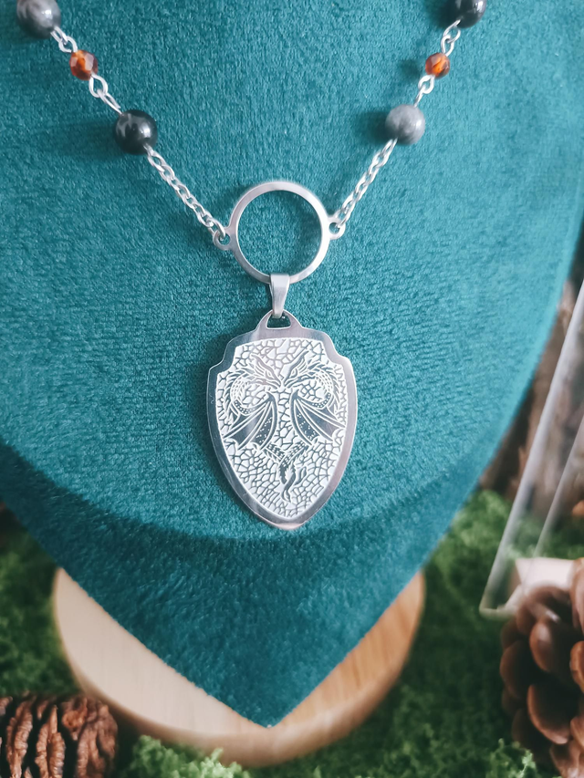 Ce collier rend hommage à l’héritage sacré des dragons tombés, symboles de loyauté et de puissance transcendée. Le pendentif gravé rappelle un blason ancien, porteur de mémoire et de fierté.