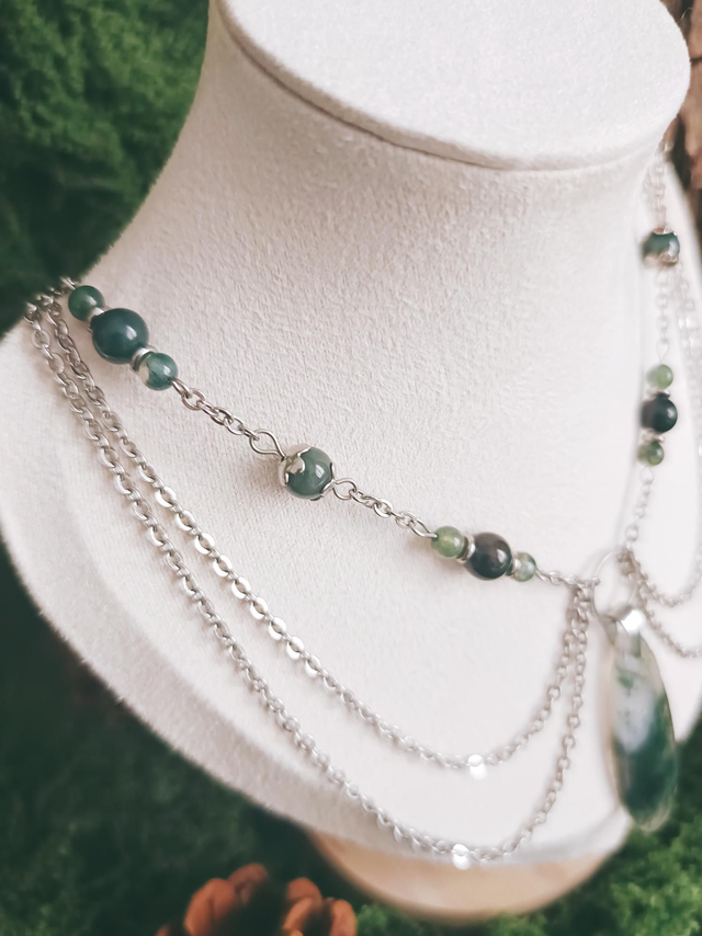 COLLIER - ÉCHOS DE LA FORÊT (argenté/agate mousse)