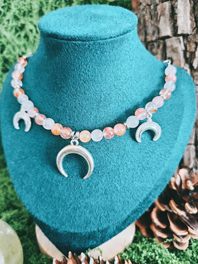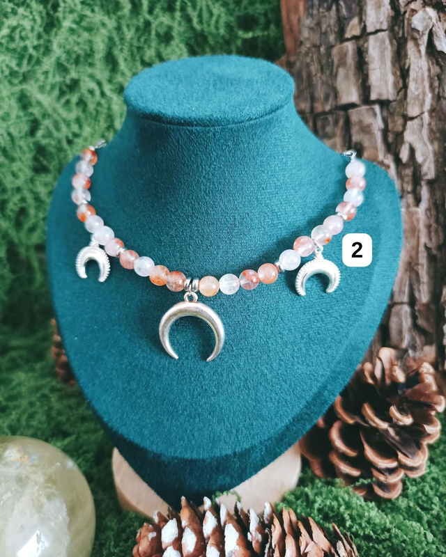 Pierre : labradorite, agate arbre/agate mousse ou quartz rose