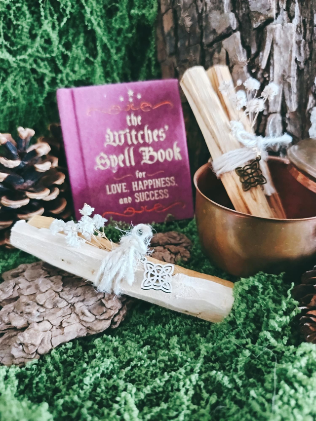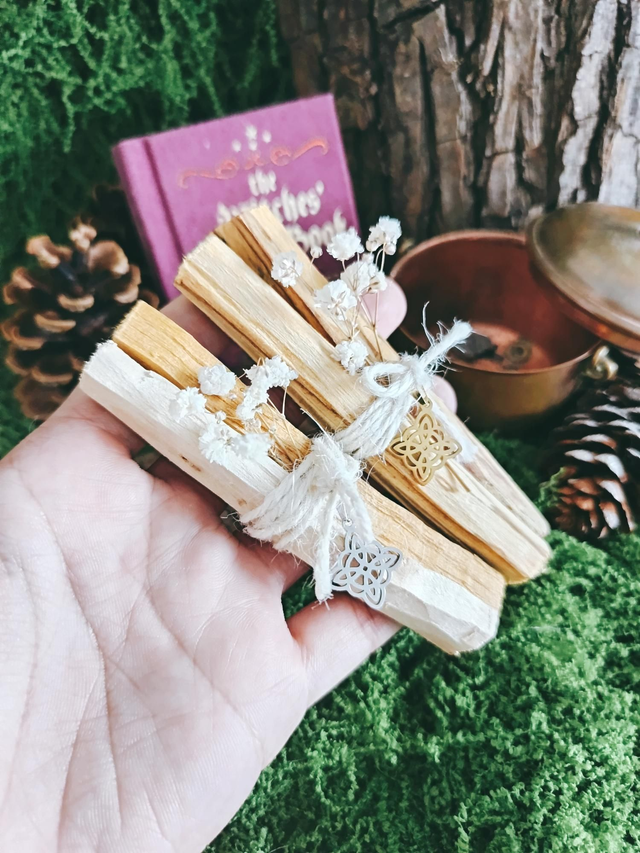Contient 2 bâtons de Palo Santo + pendentif “Nœud de Sorcière” (acier inoxydable doré ou argenté)